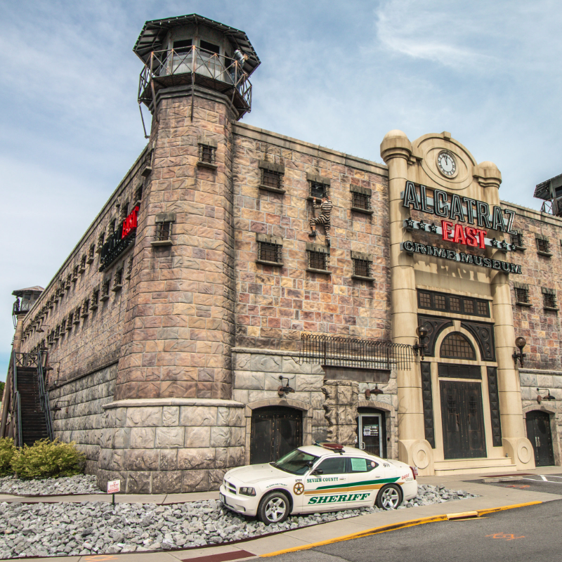The Alcatraz East Crime Museum is a one-of-a-kind attraction in Pigeon Forge, taking you deep into the history of American crime and justice. Designed to look like a fortress with nods to the infamous Alcatraz prison, the museum features over 25,000 square feet of interactive exhibits.