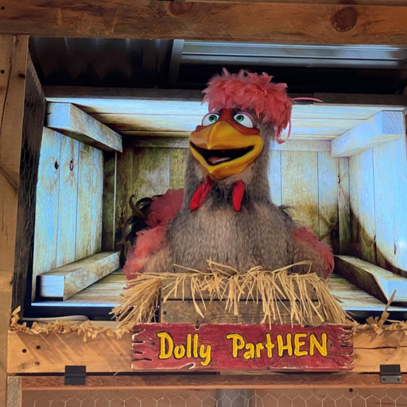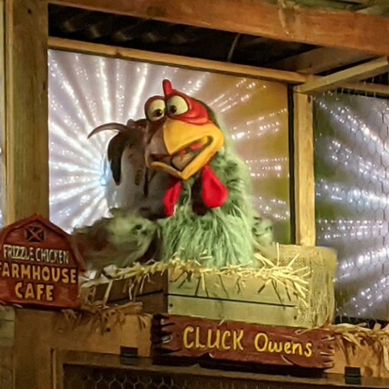 The Frizzle Chicken Café is no ordinary breakfast stop—it’s a whimsical, family-friendly diner where your favorite morning classics are served with a playful twist. As you enjoy stacks of pancakes, golden waffles, or fluffy omelets, you’ll be serenaded by over 100 singing animatronic chickens, creating a lively dining experience you won’t forget.