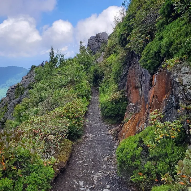 One of the most iconic hikes in the Smoky Mountains, the trail to Charlie’s Bunion offers a perfect blend of challenge, beauty, and high-altitude wonder. Beginning at Newfound Gap, this 8-mile round-trip journey climbs the Appalachian Trail through fragrant spruce-fir forests, opening up to stunning vistas and panoramic mountain ridges.
