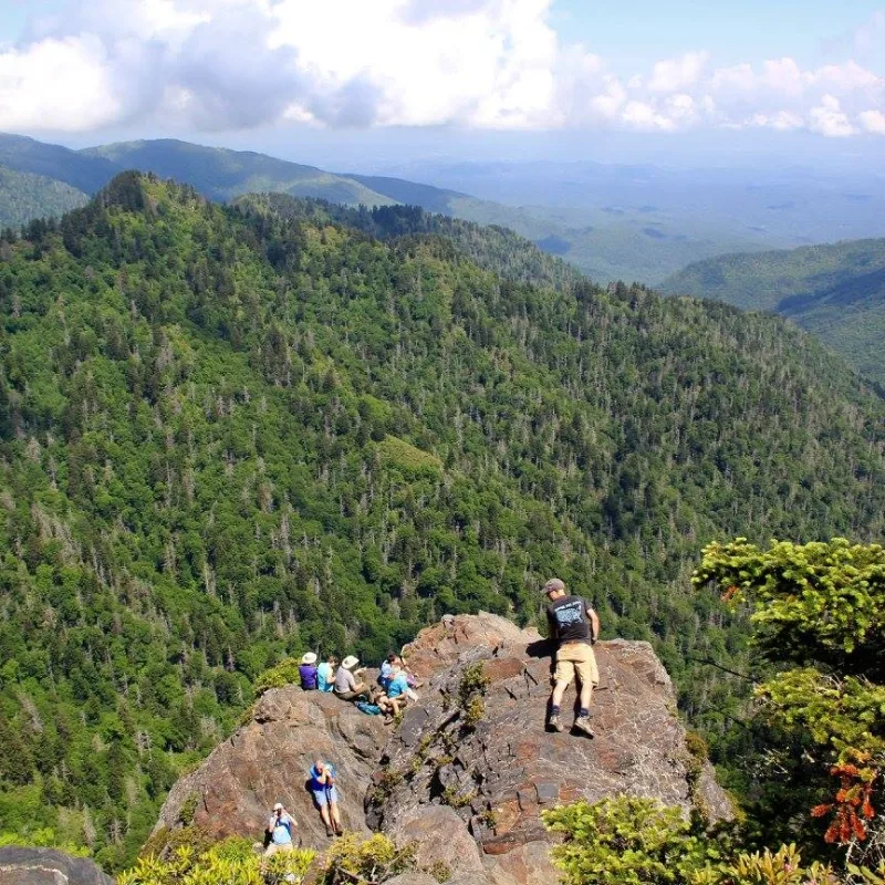 At 5,565 feet, the rocky outcrop known as Charlie’s Bunion offers one of the most dramatic overlooks in the park — a rugged perch with sweeping views of Mount Kephart and the North Carolina-Tennessee border. The name dates back to the 1920s, when a hiker’s sore foot inspired the unusual moniker, but today, it’s known as one of the park’s most photogenic destinations.